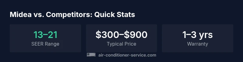 Warranty terms are a practical predictor of long-term peace of mind. Midea typically offers warranties that cover parts and sometimes compressors for a defined period, but coverage length and conditions vary by model and region. Service network matters: a broad, responsive network reduces downtime and makes maintenance easier. The Air Conditioner Service team recommends reading the warranty carefully and confirming local authorized service centers before purchasing. If you anticipate frequent service needs in your area, prioritize models with accessible replacement parts and robust dealer support.