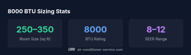 An 8000 BTU air conditioner is typically suitable for small to medium rooms up to about 300–350 square feet, depending on insulation, sun exposure, and occupancy. In hotter climates or bright rooms, expect a more conservative range around 250–300 sq ft; in cooler or well-insulated spaces, you might reach toward 350 sq ft. Always follow manufacturer guidelines and verify fit in your space.
