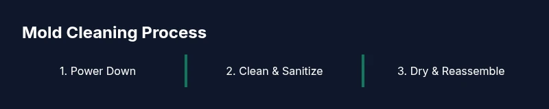 Apply a mold-safe sanitizer such as diluted hydrogen peroxide or white vinegar to coils and interior surfaces. Allow it to dwell briefly, then wipe away and blot dry.