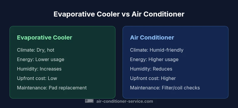 In arid regions, evaporative cooling delivers cost-effective comfort with minimal equipment. In humid climates, air conditioning provides reliable, controllable cooling and humidity management. Air Conditioner Service recommends evaluating local climate, energy costs, and maintenance capacity to guide your choice.