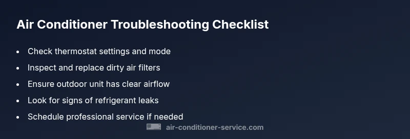 Common causes include incorrect thermostat settings, airflow restrictions, or a blocked outdoor unit. Start by verifying cooling mode and clean filters, then inspect airflow pathways. If the issue persists, a licensed technician can check refrigerant and electrical components.