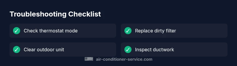 Common causes include thermostat mode, dirty filter, blocked outdoor unit, or refrigerant issues. Start with verifying mode, changing the filter, and clearing the outdoor condenser. If unresolved, contact Air Conditioner Service for a professional assessment.