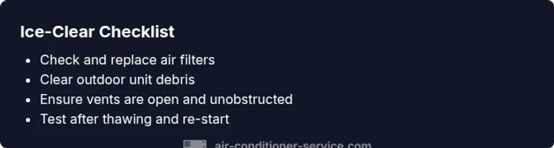 - Check: does the room feel cold but the coil remains iced? Look for refrigerant issues and consider professional evaluation.