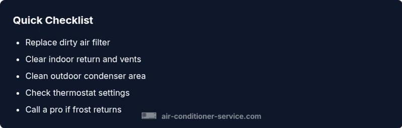 A structured diagnostic flow helps you isolate the cause without guessing. Start with airflow: is the air filter dirty or is there a blocked return? If airflow is clear, inspect the outdoor unit for debris and ensure the fan is turning. If airflow and outdoor conditions aren’t the issue, check the thermostat and sensors for proper operation. If frost persists after these checks, the system may have a refrigerant leak or improper charge. In that case, refrigerant service must be performed by a licensed technician. Throughout the process, document findings and avoid making permanent repairs on your own if you’re unsure.