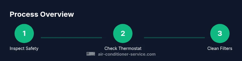Start with a quick, safe inspection using a simple, repeatable routine. Check that the thermostat is set to cooling and at an appropriate temperature. Inspect and replace the air filter if it's dirty. Ensure the outdoor condenser is free of leaves, dirt, and obstructions for at least two feet on all sides. Look for ice on the coil and listen for abnormal noises from the fan or compressor. Confirm the condensate line is clear and draining properly. If you can access electrical connections safely, tighten loose terminals and note any signs of scorching. Document symptoms with dates and photos to share with a technician. This checklist helps you distinguish between air flow problems and refrigerant-related concerns.