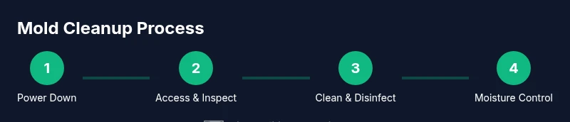 To remove visible mold, start with a mild detergent solution: mix a small amount of dish soap with warm water in a spray bottle. Wipe surfaces with microfiber cloths, and remember to dry thoroughly after cleaning to prevent new mold growth. For difficult spots, a non-ammonia cleaner followed by a disinfectant is often effective. Always turn off power at the breaker and protect nearby electronics. Wear PPE and ventilate the area.