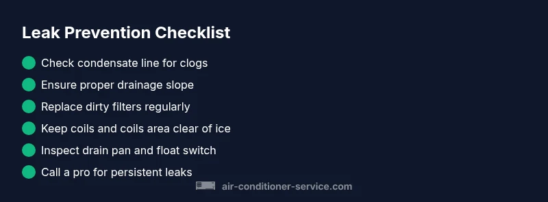 Air conditioners leaking water is usually caused by a clogged condensate drain, a frozen evaporator coil, or improper drainage. Start with the simplest checks: look for a blocked condensate line, empty the drain pan, and ensure the condensate hose runs to a safe exterior drain. If the leak persists, shut off power and call a pro.