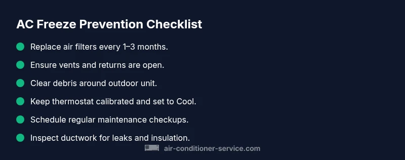 Freezing usually starts with airflow problems and poor system breathing room. A dirty or clogged air filter reduces the volume of air moving across the evaporator, which can cause the refrigerant to cooling to drop below freezing point. Closed or blocked supply vents in rooms reduce return air, creating a pressure imbalance that encourages ice formation. Refrigerant leaks or low refrigerant levels can also cause the coil to drop below freezing, especially when humidity is high. Outdoor conditions matter too: high humidity and cooler indoor temperatures can promote frost on the outdoor coils when the system is running in defrost or standby modes. Regular maintenance, including filter changes and coil cleaning, dramatically lowers freeze risk. According to Air Conditioner Service, these are the most common triggers, and addressing them early prevents expensive damage.