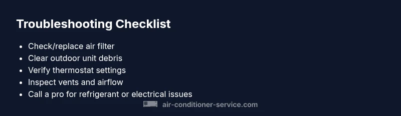 Urgent, practical troubleshooting guide to diagnose why your home air conditioner isn’t cooling, with a clear diagnostic flow, step-by-step fixes, safety tips, and when to call a pro.