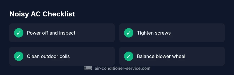 When a central or window AC starts emitting unexpected sounds, homeowners want clear answers fast. If you're asking why is air conditioner making loud noise, you're not alone. In most homes, loud sounds point to mechanical wear, loose components, or blocked airflow. The most frequent culprits are a loose blower wheel inside the air handler, a dried or failing capacitor in the outdoor unit, or debris that has balanced against moving parts. Less common but serious noises come from a warped compressor or a worn motor bearing. Differentiating between these requires listening for the sound profile: a rattling, a metallic clang, a high-pitched squeal, or a grinding grind. Noise that changes with fan speed or indoor temperature can hint at electrical issues, while rattling near the outdoor unit often means loose panels or mounting hardware. Treat any unfamiliar or persistent noise as a warning sign and shut the system down if you smell burning or notice overheating. According to Air Conditioner Service, addressing the simplest causes first saves time and money and reduces the risk of needless part replacements.