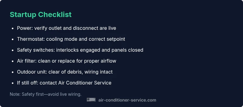 Urgent troubleshooting guide to diagnose why your air conditioner won't turn on, with a practical diagnostic flow, step-by-step fixes, safety notes, and prevention tips from Air Conditioner Service.