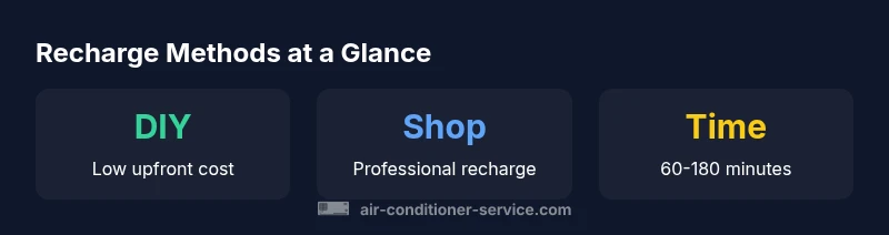 Costs vary by refrigerant type, vehicle age, and local labor rates. In general, a shop recharge may run higher in regions with strict environmental regulations or where refrigerant handling requires additional safety steps. Mobile services can be more convenient but might carry a premium for on-site visits. Timing depends on the complexity of diagnostics; simple top-offs near a leak-free system can be completed quickly, while systems with unknown leaks require more extensive testing and repairs. Air Conditioner Service analysis shows that most car owners can expect a practical recharge plan within a single service window, with transparent itemized pricing.