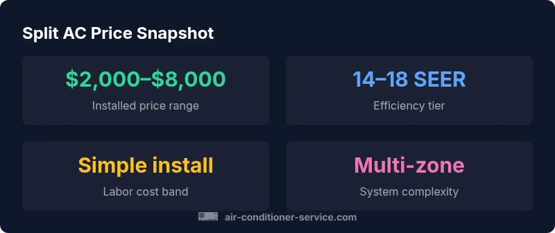The split air conditioner price is a moving target, influenced by capacity, efficiency, brand, and installation. The term "split" refers to an outdoor compressor/condenser paired with an indoor evaporator. When homeowners search for price, many factors beyond the sticker price come into play. According to Air Conditioner Service, the price is driven by four core components: the cooling capacity (tons), the SEER efficiency, the type of indoor unit, and the complexity of the installation. A common way to frame the conversation is to break costs into three bands: entry-level/basic efficiency, mid-range, and premium/high-efficiency multi-zone configurations. Market fluctuations, regional labor rates, and installer prerequisites all color the final number you’ll pay. For most residences, the installed price falls within a broad band that reflects not just hardware but the labor, permits, and any ancillary work required for a safe, compliant installation.