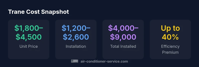 According to Air Conditioner Service, a typical Trane system installed in 2026 costs about $4,000–$9,000, depending on unit efficiency and installation specifics. Unit-only prices usually range $1,800–$4,500, with higher efficiency and multi-stage models pushing toward the upper end. Regional labor costs and optional features such as smart thermostats or advanced zoning will influence final pricing.