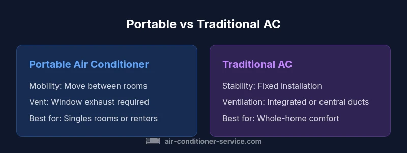 Understanding the difference between portable aircon and air conditioner starts with recognizing how each unit is designed to cool a space. A portable aircon is a freestanding appliance with an integrated vent hose that exhausts hot air through a window or vent. It can be moved from room to room, making it appealing for renters, small apartments, or spaces that don’t justify a fixed cooling system. By contrast, a traditional air conditioner (often a window unit or a fixed central system) is designed for longer-term installation, delivering higher cooling power and more uniform comfort across larger areas. In practice, this means portable units are excellent for spot-cooling and flexibility, while fixed units aim for steady performance over time. This distinction matters not only for comfort, but for energy use, noise, and how you manage space. According to Air Conditioner Service, recognizing this difference helps homeowners avoid overspending or undercooling while choosing the right cooling approach for their home.