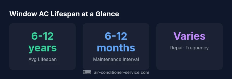 How long do air conditioners last window? For a standard window unit, expect about 6-12 years with regular maintenance and proper installation. Cheaper or poorly cared-for models may fail earlier. Lifespan is shaped by usage, maintenance, quality of components, and correct sizing. The Air Conditioner Service Team emphasizes regular cleaning, coil care, and annual checkups to maximize life.