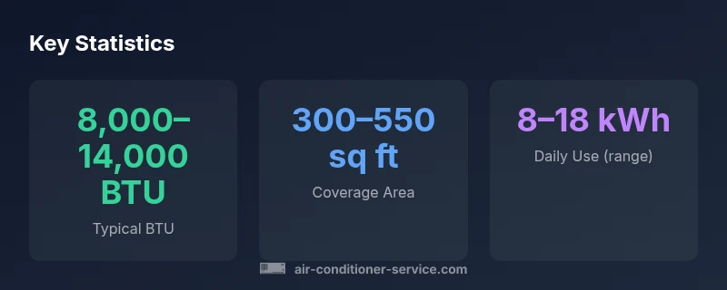 | 12,000–14,000 BTU portable unit | 12,000–14,000 BTU | 400–550 sq ft | 12–18 |
